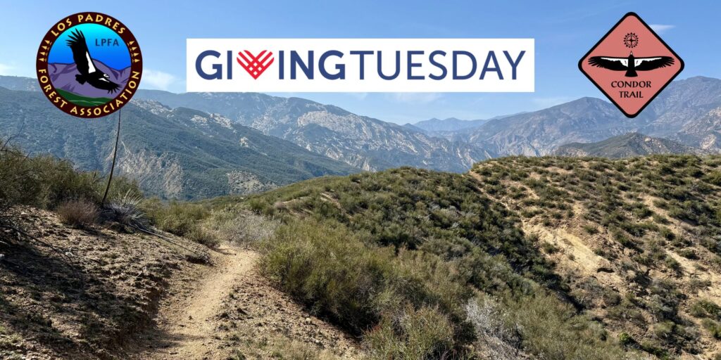 For GivingTuesday this year, LPFA has our sights set on an epic network of trails through the Sespe Wilderness. We are raising funds to maintain the Ventura County section of the Condor Trail! The CT route through the Ventura backcountry begins at the Pothole Trailhead near Lake Piru, travels through the heart of the Sespe Wilderness, and heads up and over Pine Mountain to Ozena Station on Highway 33. Trails included in this project are: Pothole Trail, Agua Blanca Trail, Bucksnort Trail, Alder Creek Trail, Sespe River Trail, Piedra Blanca Trail, Reyes Peak Trail and Boulder Canyon Trail.